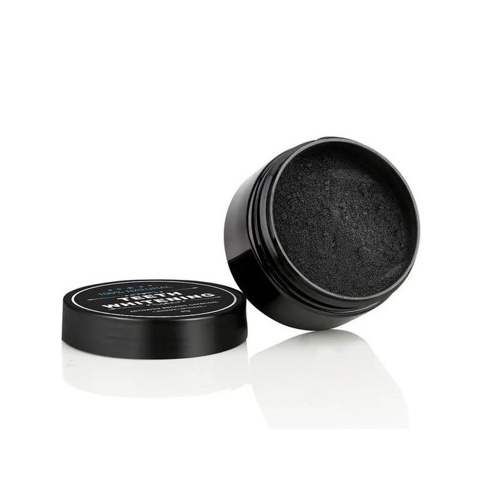 Este carbon coco viene en forma de polvo negro bastante fino que blanquea los dientes de manera muy rápida. Es 100% orgánico, vegano y suave, sin químicos que debiliten el esmalte de nuestros dientes.